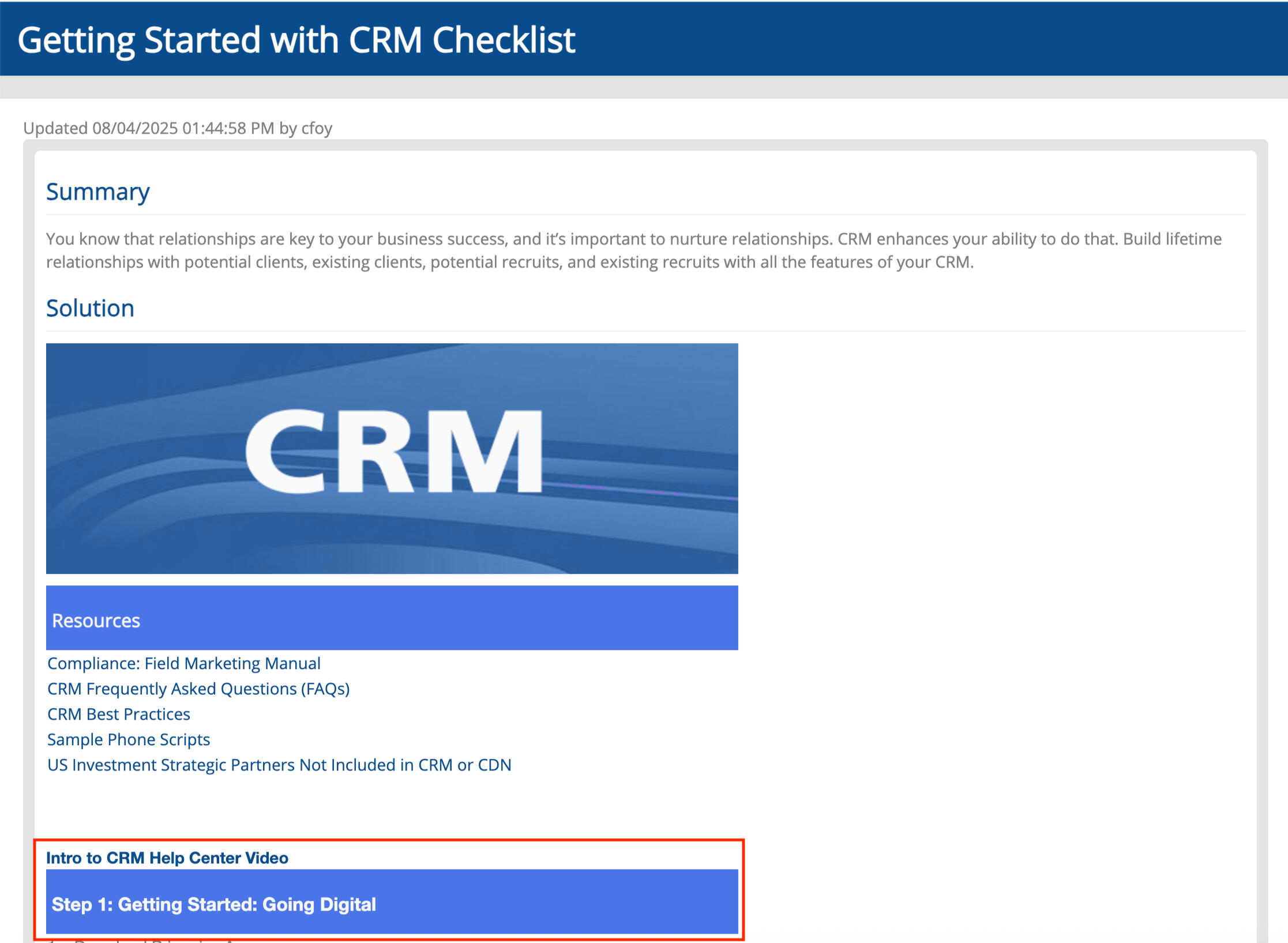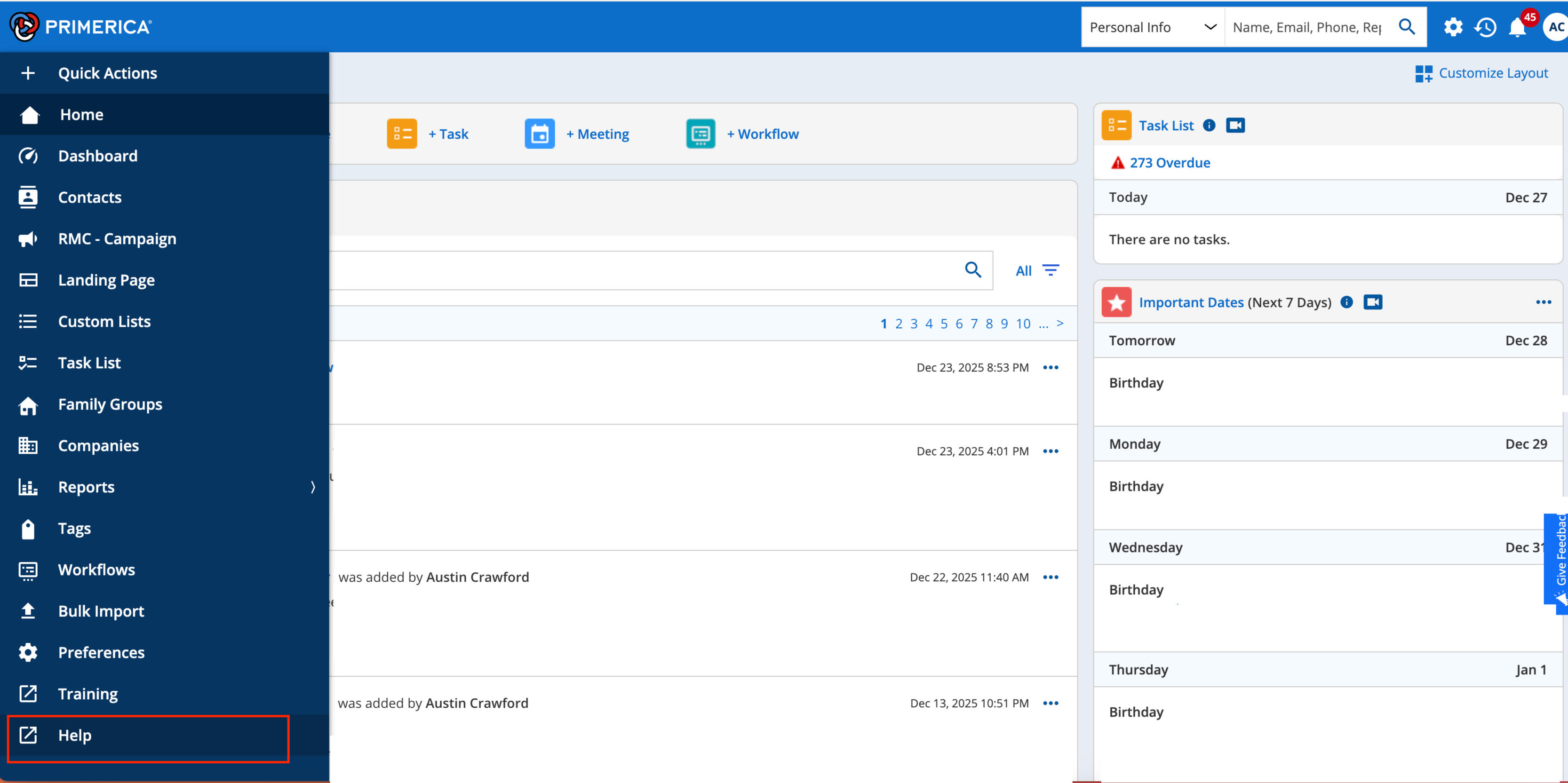 Find "Help" in the CRM menu