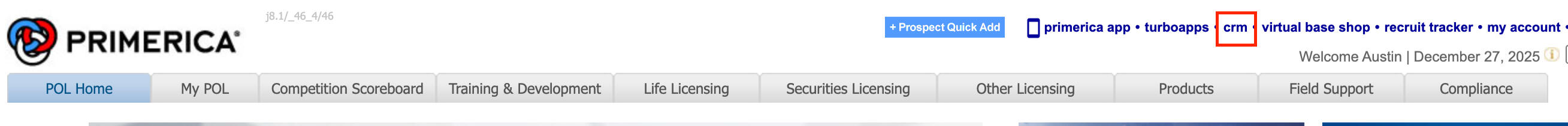 Find "CRM" in the upper menu